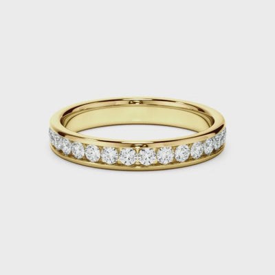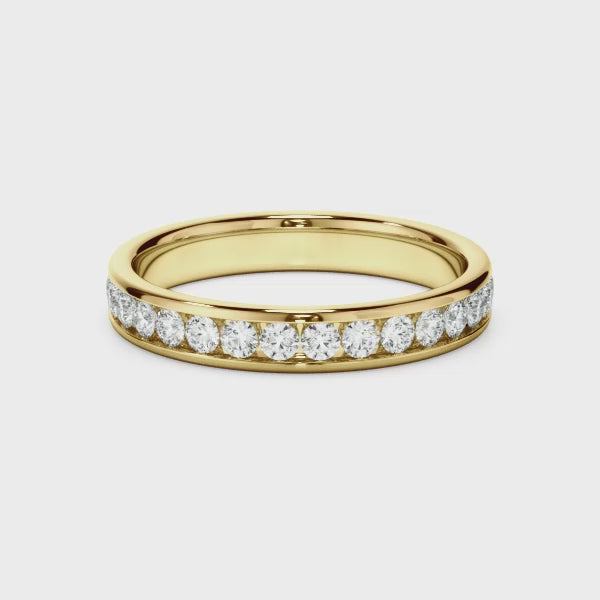 This stunning custom-made wedding ring features a half band of round brilliant cut diamonds set on an 18ct gold or platinum band. Exuding fluidity in its line work, and boasting an elegant silhouette, as with all the pieces in our Bespoke Collection, this piece is made especially for you.