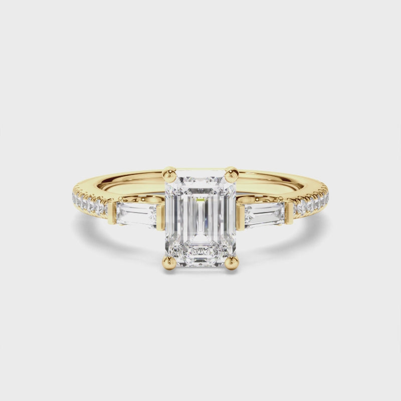 Emerald Cut Diamond Engagement Ring with Baguette & Pave Sides