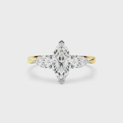 Marquise Cut Diamond Engagement Ring With Pear Cut Diamond Sides