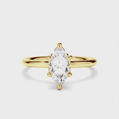 This timeless custom-made marquise cut diamond engagement ring, made with your choice of diamond centre stone, features a 6-claw setting set in a classic round band. Exuding fluidity in its line work, and boasting an elegant silhouette, as with all the pieces in our Bespoke Collection, this piece is made especially for you.