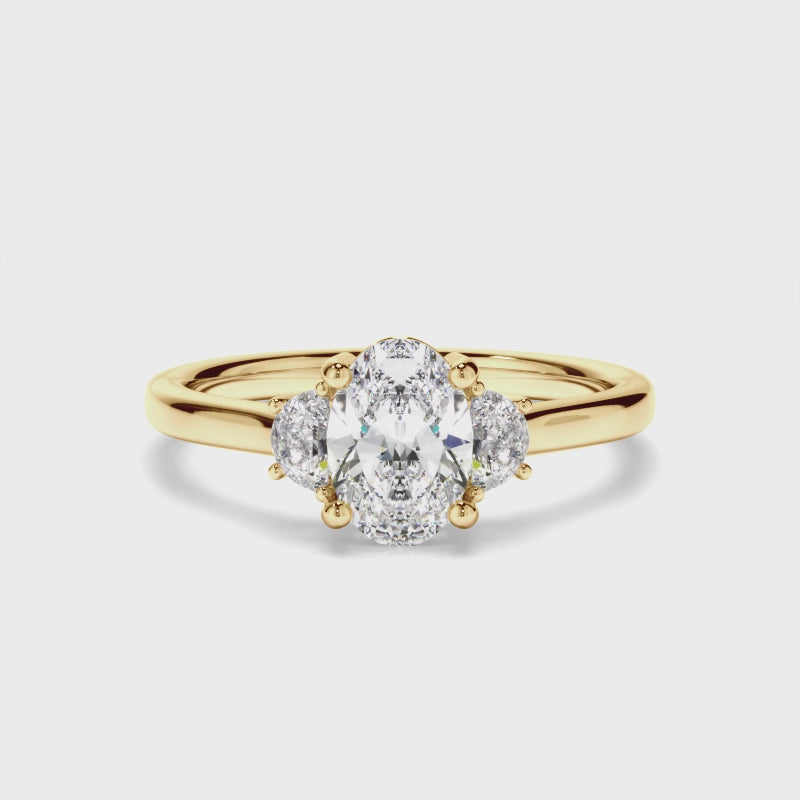 Oval Cut Diamond Trilogy Engagement Ring with Half Moon Sides