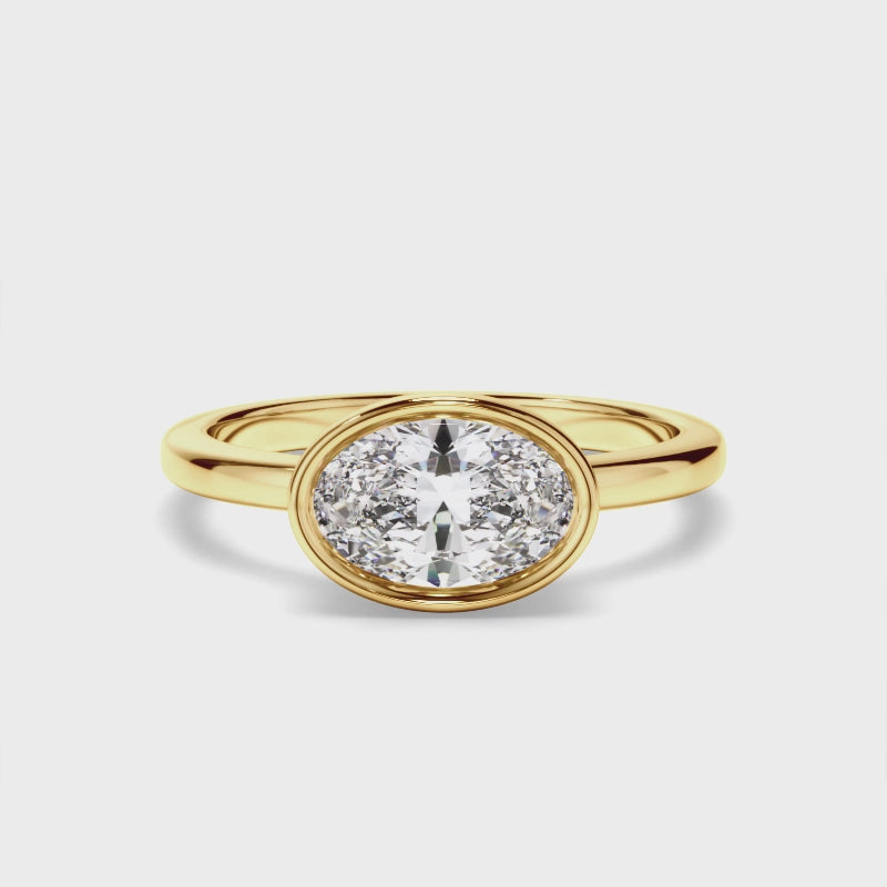 Oval Cut Diamond Bezel East West Solitaire Engagement Ring