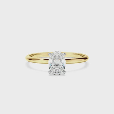 This timeless custom-made engagement ring, made with your choice of diamond centre stone, features an oval cut diamond with 4-claw solitaire setting. Exuding fluidity in its line work, and boasting an elegant silhouette, as with all the pieces in our Bespoke Collection, this piece is made especially for you.