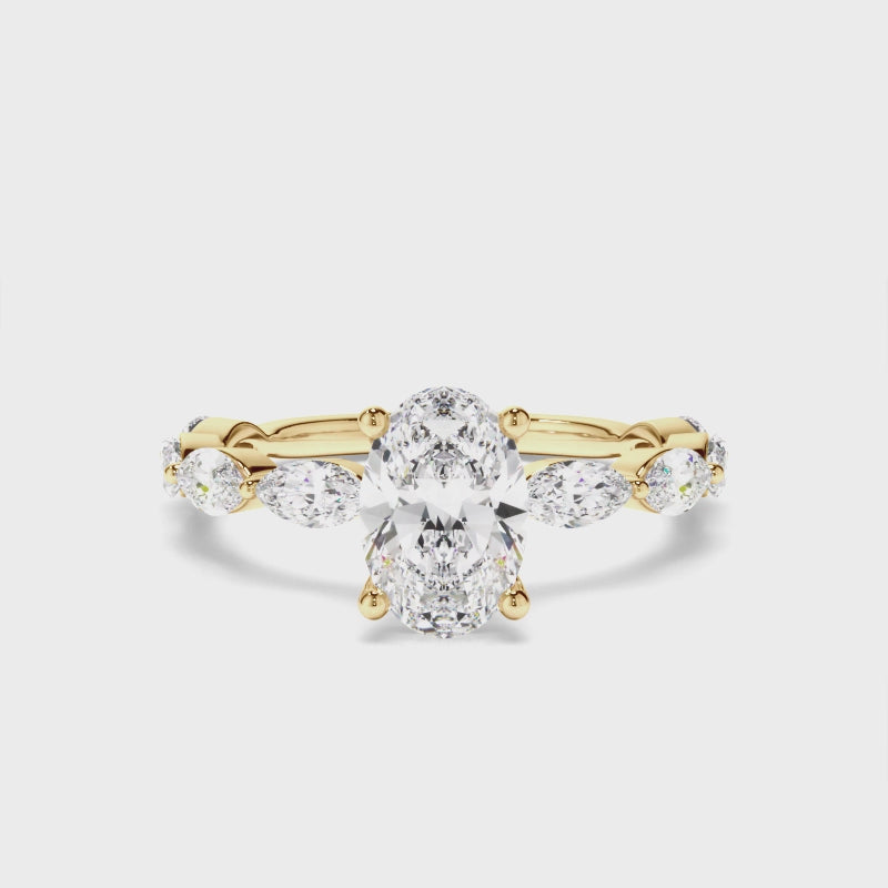 Oval Cut Diamond Engagement Ring with Marquise Sides