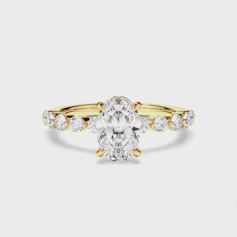 Oval Cut Diamond Engagement Ring with Diamond Sides