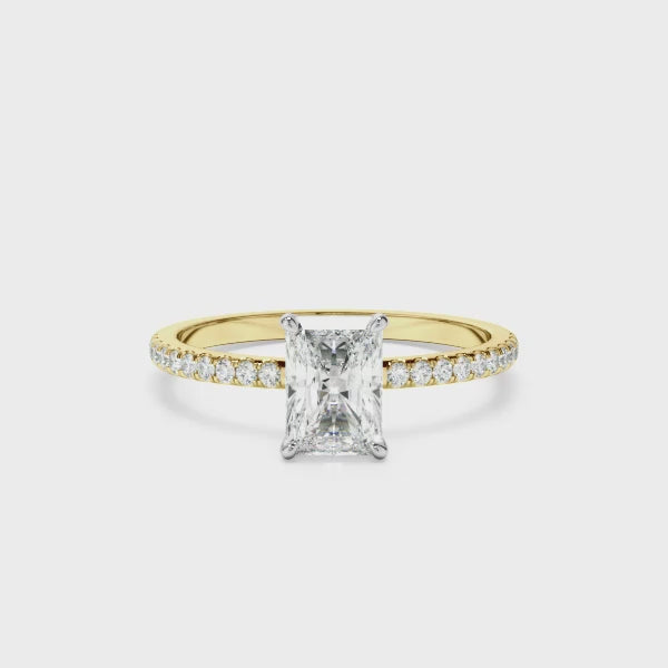 Radiant Cut Diamond Solitaire Engagement Ring With Pave Band