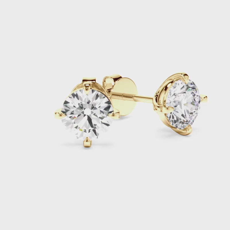 These round brilliant cut diamond stud earrings, made with your choice of diamond centre stone, feature a classic 4-claw setting. Exuding fluidity in its line work, and boasting an elegant silhouette, as with all the pieces in our Bespoke Collection, this piece is made especially for you. Pictured here with a 1.00ct Round Brilliant Cut Diamond for each ear, the final price is determined following your stone selections.